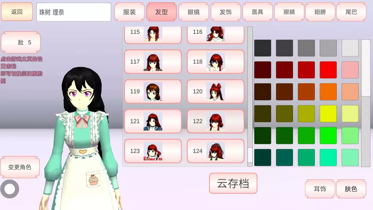 安妮的发型是119号,有点像麻花辫,衣服的颜色是