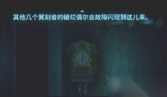 3、这里起身之后,先往左边一格,再往右边一格看墙,然后会闪现过来一个时钟
