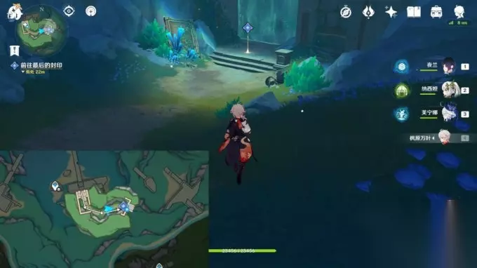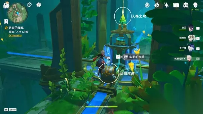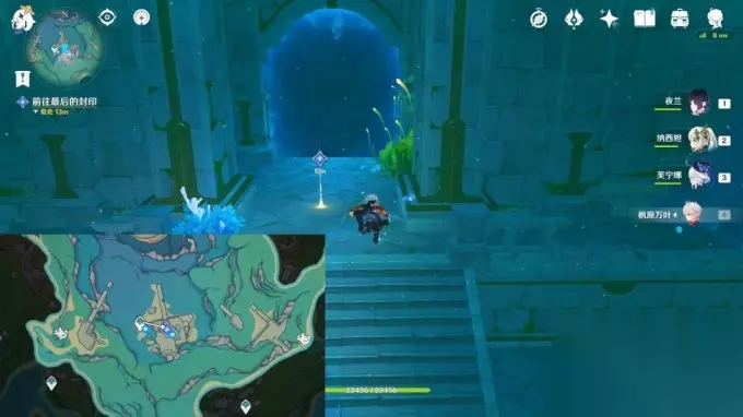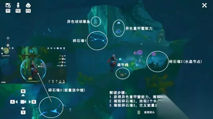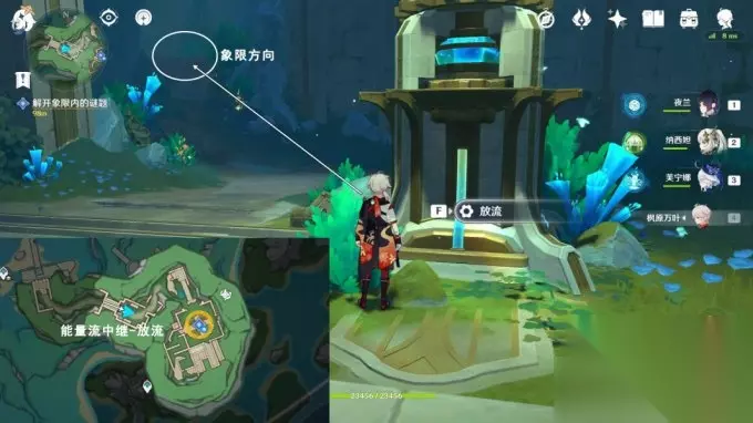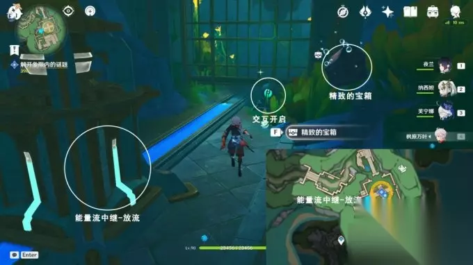 8.放流 完成西南方向解谜,往地图的东北方向游 交互能量流中继-放流,获得精致的宝箱; 交互开启,沿着水渠游,进入屏障内;