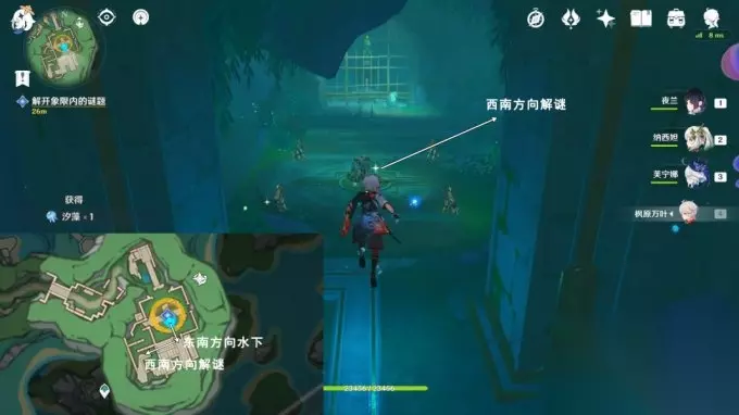 6.东南方向水下 按图中指引路线游,前往西南方向解谜
