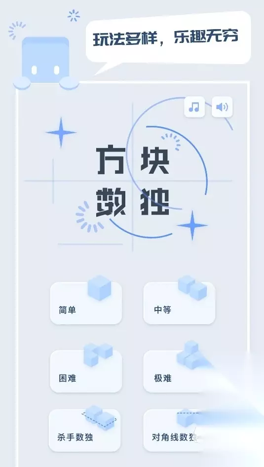在9*9的网格中完成数字的填写,并确保每一行、每一列的数字都没有重复的数字,是这部《指趣数独》为人们提供的经典数独玩法。它所收录的数独关卡非常多,并贴心地为人们进行了难度分级,方便人们逐级挑战和进行训练。各位在游玩时还能使用它的撤销、提示等功能,让自己能更顺利地完成数独挑战,成为数独的高手。 高速下载 普通下载 优先233乐园APP下载 4、《方块数独》