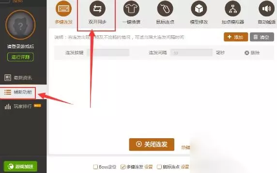 2、打开“DNF百宝箱”后,在该界面的左侧点击“辅助功能”,接着在“辅助功能”界面即可看到“双开同步”的功能;