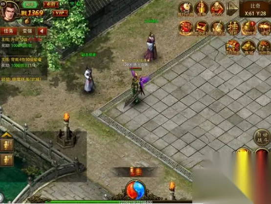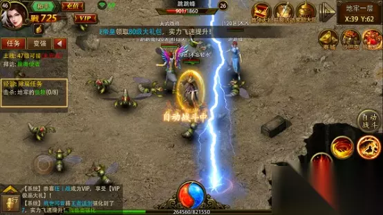 游戏会引导你去做除魔任务,一天能做12次,可以花费1w的铜币去刷新星级,越高星级奖励就越高,完成任务后可以使用绑金60w领取三倍奖励 小技巧:接取任务不需要挂机,点击【任务】会自动去打怪,任务完成后手动领取即可(挂机会自动完成任务,以免费领取的奖励完成,所以不建议);12个任务全部都用3倍奖励领取,绑金不足的可以丰富在线时间,以领取宝箱活动绑金,也可以在商城购买金砖,还可以通过打矿洞来获得绑金 一、 离线挂机