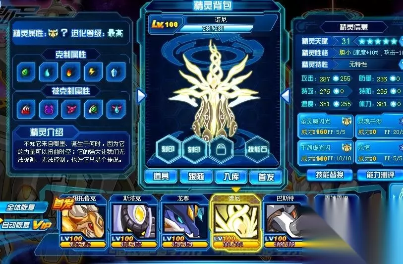 1、谱尼 排在榜首的是谱尼,它以超高的种族、威力极高且附加BT效果的大招,还有“灵魂干涉”(现在好像被和谐了)“虚无”等王牌,基本没有缺点。以一位元老级完美的超级BOSS的身份当之无愧地排在第一名。其支持度和渴望度是其他精灵无可比拟的。