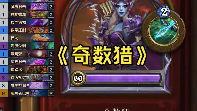 ### 奇数猎 # 职业:猎人 # 模式:狂野模式 # # 1x (1) 保卫矮人区 # 2x (1) 倒刺捕网 # 2x (1) 击伤猎物 # 2x (1) …