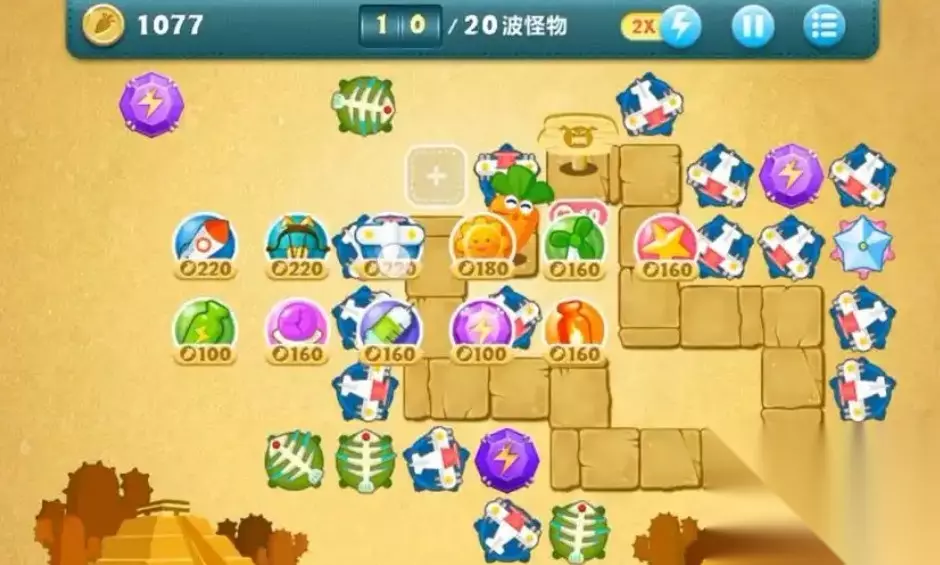 保卫萝卜挑战34攻略 更新策略:在游戏中,一定要更新防御塔,提升攻击。同时,注意观察怪物的攻击路线,合理调整防御塔的位置。技能使用:在游戏中,及时使用技能,对怪物造成额外的伤害。道具利用:在游戏中,有些道具可以帮助你更好地防御,比如可以去除四周的阻碍物,获得更多金币或防御塔。BOSS战:在BOSS出现时,利用变卖和打小怪积攒的金币,在右下角迅速建造高等级的太阳花、魔法球塔和减速便便以到达集中火力,来对Boss造成大量伤害。