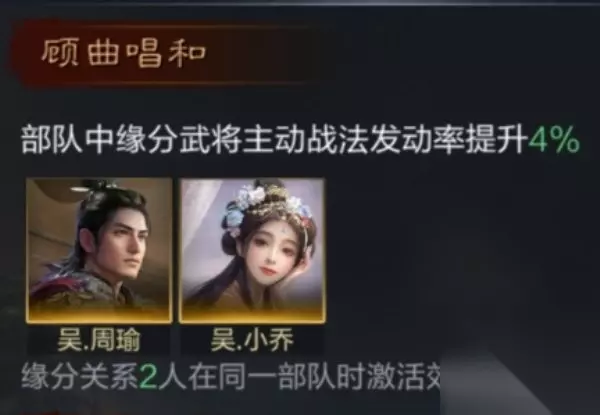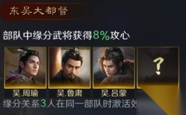 提升部队缘分武将的主动战法发动率。 2.东吴大都督