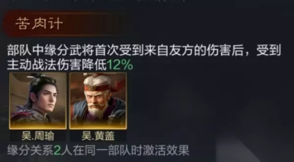 使部队缘分武将获得“攻心”。 3.苦肉计