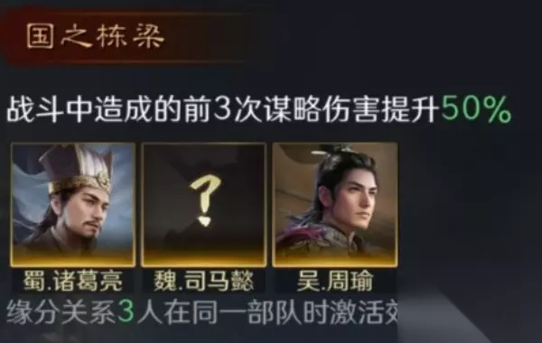 降低来自我方主动战法的伤害。 4.国之栋梁