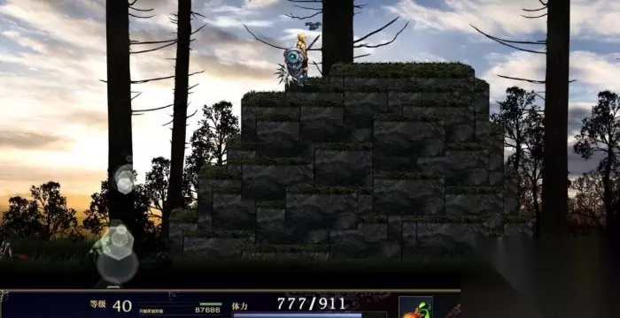 图4 选“否”再选“是”,主角决定去寻找嘉隆。剧情过后有存档水晶,这里是本作的一大难点,因为凭依技和嘉隆能力都无法使用,只能靠平砍或者奥义来战斗。这段路比较绝望,第一个战斗区域结束切换区域发生剧情,小白加入,然后下一个区域中间有个树根可以进入,以目前的战力还是不推荐进去。继续向右走切换区域走到最后有个绿色向上箭头图4,打开宝箱获得魔导水晶,切换区域有存档水晶和大宝贝商店(因为战斗过于不适总结一下战斗区域就3个,大家顶住)。向右前进进入BOSS战。 这个BOSS建议贴身战斗,BOSS一共5个技能,一排雷剑,它只会朝主角站的方向放,等它一放跑到它身后就可以了;头和脚两波火,当BOSS头上有魔法阵的时候它已经选好了吐火球的方向,这时候跑到背后去只需要跳起来躲地上来的火就可以;石化的话可以完全用防御只不过格挡槽会被清空,因为BOSS别的技能都无法防御也无所谓了或许是我的盾格挡槽太低了;剩下两个技能都是远离,总体来说还是很好打的(战胜后务必要存档,接下来继续绝望体验!!!)。胜利后发生剧情得到白的变身耳环,继续向右走又进入战斗区域,好在这次只有一个区域,再向右前进进城。装备上饰品白的变身耳环才可以通行,切换区域见到小黑发生剧情,进入塔内。发生剧情再次选择,如果选“是”进入结局。 选“否”再选“是”,主角决定使用天平,再次回到与3只狗战斗的地方,胜利后发生剧情进入BOSS战。这个BOSS战没什么难度,基本上是欺负小孩。再剧情结束后回到城镇发生了魔物入侵,进入花环的门向左走发生与大量杂兵的战斗,胜利后进门,这时候左边可以看见3个之前打的BOSS,嘉隆让主角先不用管,但其实是可以打死的,用武器远程攻击或者魔法杖放魔法可以一点点磨死,胜利后看见是位美丽的女孩子在和它们战斗,对话后获得5个面包和爱情。继续向右走发生剧情,进入酒馆发生剧情第七章结束。