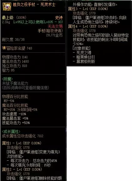 数值对比 【武器特化提升】 降临:莱迪娅秒伤提升35%,死灵之缚、暗黑蛛丝引、暴君极刑斩cd减少约10% 【CP制式提升对比】 制式武器的觉醒技能伤害高于cp武器约3.3%,制式武器的降临莱迪娅、死灵之缚、暗黑蛛丝引、暴君极刑斩之外的其他非觉醒技能秒伤高于cp武器约6.9%,cp武器的死灵之缚、暗黑蛛丝引、暴君极刑斩秒伤高于制式武器约5%,cp武器的降临莱迪娅秒伤高于制式武器约30.7% 总结 【玩法特点】 ①降临莱迪娅伤害打完前(约1s)无法再次施放降临莱迪娅,故为了稳定触发降临莱迪娅的柔化增伤,需要合理规化技能保证在每次施放降临莱迪娅时都有技能用于柔化(在常用技能均cd时,可以使用暗魂波、手里剑等技能柔化) ②需要保证在莱迪娅给怪物附加恐怖烙印后再施放死灵之缚、暗黑蛛丝引、暴君极刑斩,触发减cd效果 ③cp武器加持下的莱迪娅变为了一个短cd的段延迟较大范围AOE,清小怪时不用省,同时在boss战时注意避免空转 ④cp武器加持下的莱迪娅施放频率极高且需要柔化,故非常推荐将快捷键设置为空格等单键,增强手感并蹭到手搓的减cd效果,在实战中的丢一个技能按一下莱迪娅的实际操作手感类似于征战者的“霸王戟” 【数值提升】 在数据方面,死灵的cp武器对特化技能的增幅强度(35%)属于较高但不是最高的一档,而降临莱迪娅本身作为一个没有护石但本身技能底子还算不错的技能,特化的价值(考虑到非常强大的形态优化)还是非常高的, 同时减少三大无色约10%的cd也不可忽视,至于其他技能的亏模幅度在7.5%以内,属于非常可以接受的范围 【装备搭配】 死灵的cp武器能够适配绝大多数装备流派(mp、无色、各类异常等等),另外由于死灵存在降临莱迪娅与巴拉克的愤怒两个45级技能,使得cp武器与45技能特化装备有着极强的适配性,个人认为cp武器与自定义属性装备的45特化是死灵的毕业搭配 【武器推荐】 推荐所有死灵玩家选择cp武器,一方cp武器将一个命中率存在些许问题且范围不大的的长cd技能变为一个短cd同时高数据的灵活的大范围AOE,并且cp武器与自定义属性装备的联动带来了更高的上限;另一方面,对于将死灵作为搬砖小号培养的玩家,cp武器加持下的萝莉有着很强的清图能力,非常推荐 制式武器的优势区间仅为容易获取进而会有比cp武器更高的装备等级期望,以及在未来可能存在的国服秒杀环境下,制式武器的一套爆发会略高于cp武器 《DNF》死灵术士CP武器解析的这个问题不少小伙伴都遇到过,其实解决起来也没有大家想的那么困难,大家直接照着本篇攻略走就能完成了,还是挺简单的。