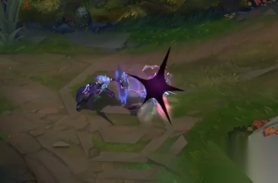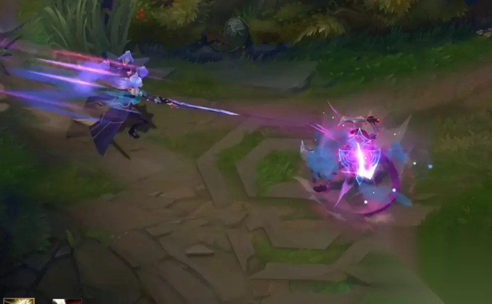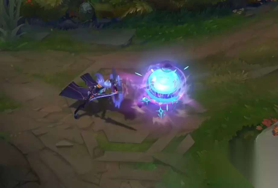 Q技能是特效炸开,其实和前面几款没有太大的差别,但是蓝色的魔法特效确实是只有蕾欧娜才有,带有这梦幻的光效。