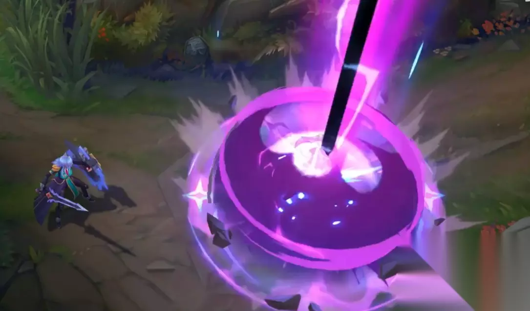 R技能则是最炫酷的,紫色的特效圈从天而降炸开了紫蓝色的光效。