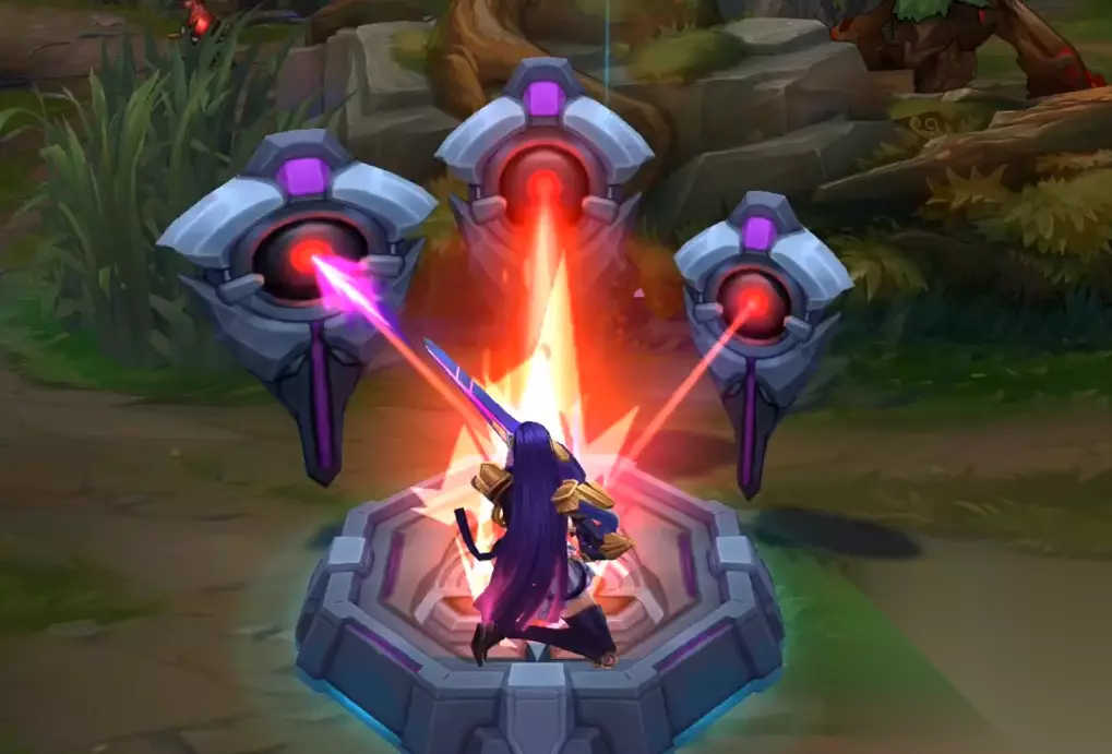 W的技能是在脚底下有个紫色隐魔法阵,而E技能也带有浓浓的热血漫画风。