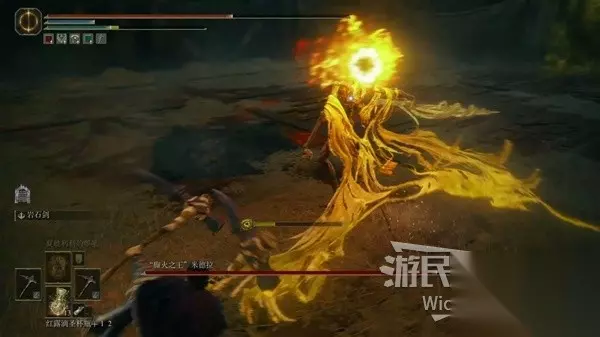 米德拉在走向你时会召唤多个火焰串,由于伤害范围广,你需要多次向后翻滚来躲避这一攻击。