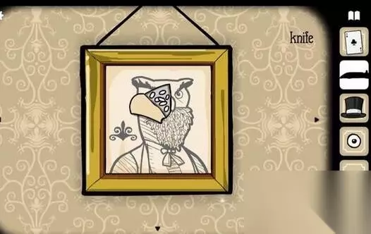 《锈湖:旅馆》兔子先生房间白豆位置介绍 白豆位置 答:白豆在猫头鹰先生的画像里,需要拿小刀割开 步骤 1、切换画面,到有门的这边