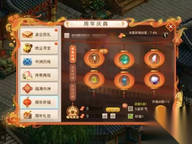 全区组共享活动 周年祈福: 祈福得道具奖励和祈福点数,本服祈福进度达到100%则祈福点数达到666点的道友有机会获得随机梅兰竹菊变异宠物!