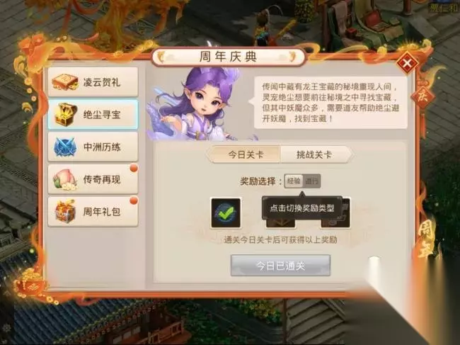 招财进宝 : 每天完成招财进宝,有机会获得八周年纪念宠“凌云”或元神碎片·凌云!