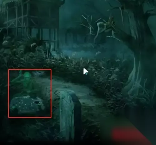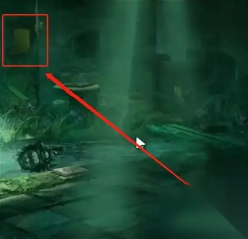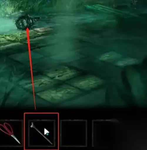 21、在回到祠堂的门口,把前面获得的乌龟和佛头给扔进湖里面。 22、接着切换成女生视角,到湖里面使用拐棍把佛头捞出来压在机关上面。