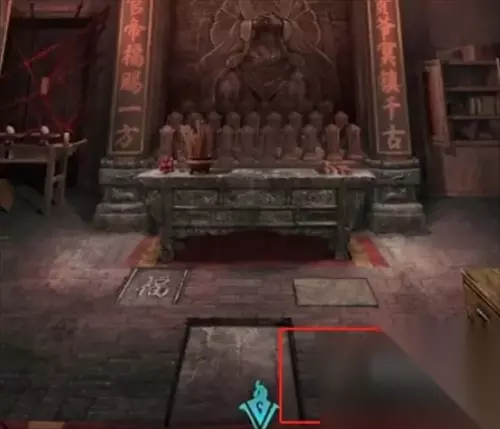 35、打开盒子以后要完成一个小游戏才可以拿到道具,到祠堂后面的小屋把道具放在牌位桌子上。 36、然后转动镜子的方向,左侧窗户打开,可以看到一个黄色的祈愿牌。