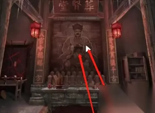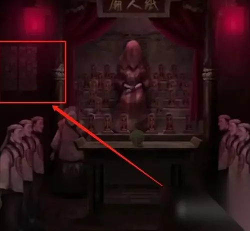 26、回到地下室开启皮影游戏,根据皮影小人指的方向点击位置,完成后可以拿到拜神金纸。
