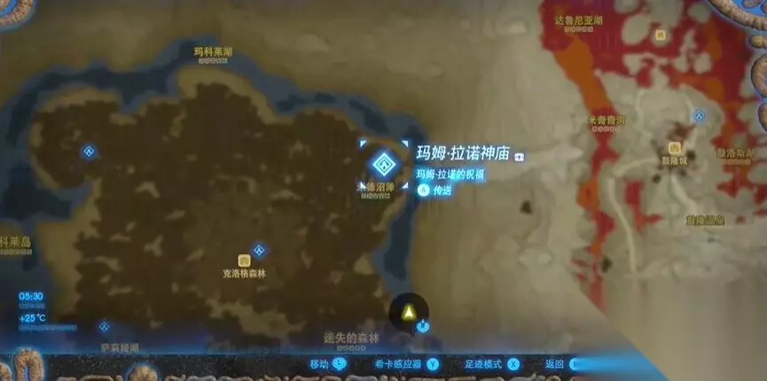 塞尔达克洛格试炼三个位置分别在克洛格森林的东北、西北和西南方向。 一、不燃烧的试练 1.在克洛格森林的东北方向,米的沼泽处,终点时玛姆拉诺神庙,地图上的位置如图所示