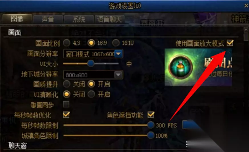 UI大小是下方的菜单栏大小,关系不大 垂直同步,一定要关闭,卡顿影响比较大 画质提升,也可以开启,影响不大 帧数限制,开到最大就行,越高越好 每秒帧数优化开启,角色遮挡开启 下来的 光环 阴影 震动特效 可以全部关闭 有需要的也可以保留 影响不大
