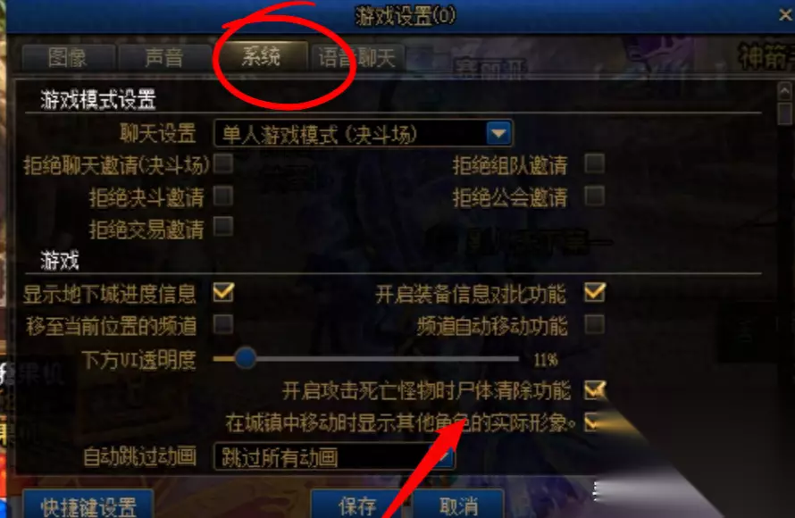 如果技能比较刺眼的可以降低,看起来画面更柔和 可以保护眼睛,队友的技能透明度,调到10%左右, 队友技能太绚丽,会影响判断 显示角色轮廓,怪物轮廓,方便判断自己的或者怪物的位置, 实际体验会有些卡顿,建议还是关闭 系统选项方面,清理怪物尸体可以打开,可参考我的设置 系统选项,可以参考我这个设置, 清理怪物尸体 功能开启,这个影响不大