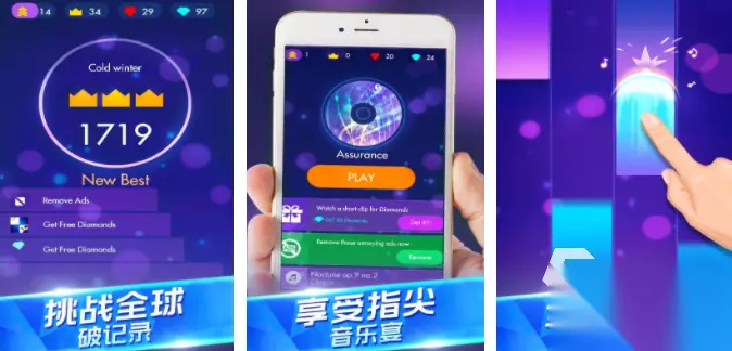 在这个游戏中会有很多钢琴乐曲,而且为了增加游戏的挑战性,在这个游戏中钢琴的弹奏变得更有挑战性,玩家需要按照游戏中给出的这些方块顺序进行点按,如果能够跟上节奏,点按正确的方块,那么玩家就可以获得相应的分数,每次游戏结束之后都会有丰富的呈现。 高速下载 普通下载 优先233乐园APP下载 4、《钢琴独奏大师》