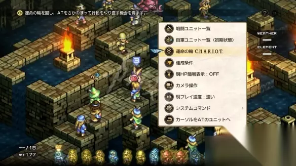 命运之轮作用介绍 使用“命运之轮”,也许可以拯救当时没能救下的角色,或与根据玩家当时的选择而未能成为伙伴的角色共同展开另一段不同的故事。 C.H.A.R.I.O.T. 在战术模拟 RPG 中,有很多场面需要高度的注意力和耐心,比如选择的行动可能会对之后的战术产生不可逆转的不利影响,或者失败后就必须从头开始等等。 本作的“命运之轮 C.H.A.R.I.O.T.”则能够叫出战斗中记录的行动,并回溯至任意回合来重新游玩。 每场战斗中可以借由“命运之轮 C.H.A.R.I.O.T.”倒回的回合数是固定的,游戏初期阶段可以倒回至10个回合前,但随着游戏的推进,能够倒回的回合数会逐渐增加。若想要改变结果,就试着倒回并改变行动吧。