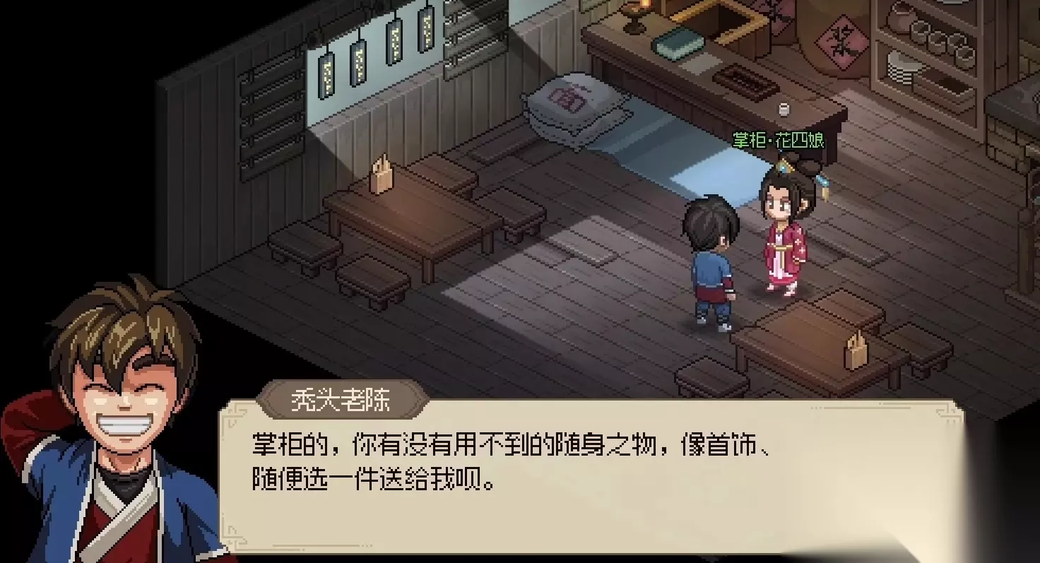 此外,还有一种可以让其加入队伍的方法。就是如果我们的玩家朋友们做完了花四娘的剧情,并且将好感度拉高之后,邀请掌柜花四娘进队伍的话,之后如果我们和包打听进行对话,那么包打听就会希望加入我们的队伍。
