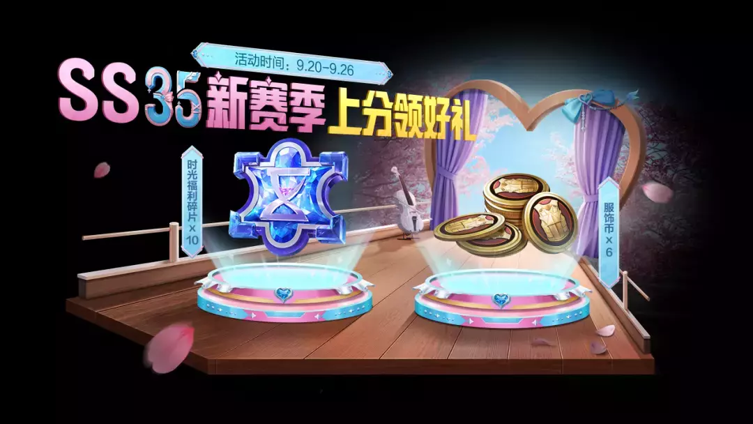 9月20日-9月26日,SS35新赛季开启,上分累计达到指定的分数,可领取时光福利碎片×10,查看上赛季回顾还送6个服饰币哟~