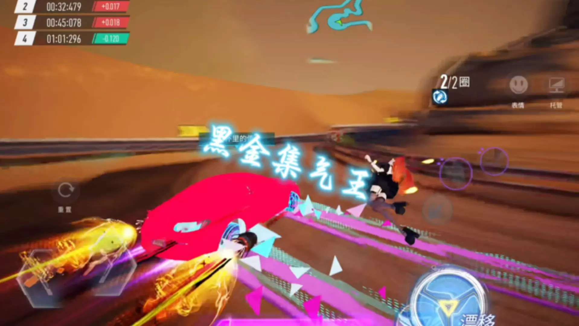 这是《王牌竞速》的游戏内容,展示了蔚来赛车搭配神芯的玩法,玩家用神芯的大招完成出弯和开局集气,借助神芯追速度,拉长惯性,跑出不错的赛道成绩,这种搭配比较小众。