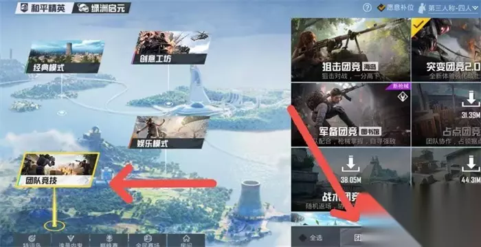 获得方式 2、进入游戏,切换【团队竞技模式】,再点击【团竞手册】。