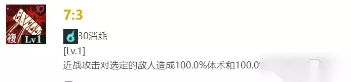 7:3 近战攻击对选定的敌人造成100.0%体术和100.0%功法的综合伤害。