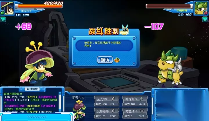 要不是当时因为这个精灵的双防分配不是太高,可能我就把它练成坦克了。【大地精华】是双防+2,【风沙暗袭】消除对方强化,【穿透之视】下两回合必定暴击,【暴走能量】攻命+2,是一只对于平民玩家而言,相当不错的精灵。