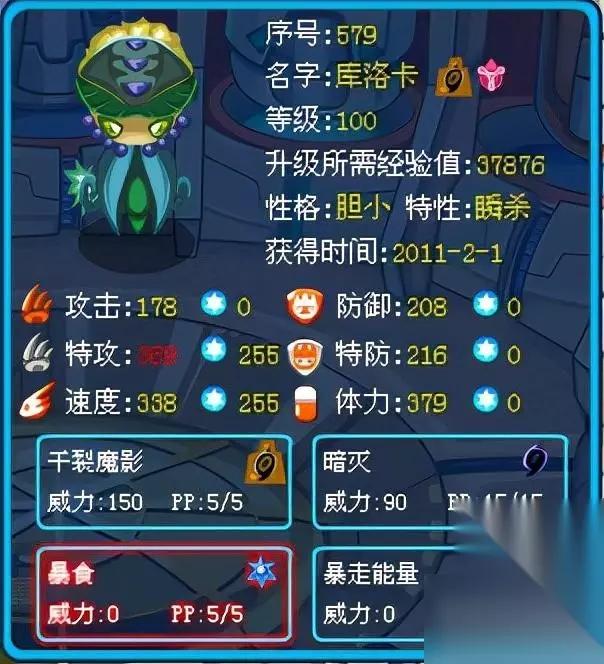 库洛卡:依旧是暴食一族的融合精灵,不过用到的材料就变了。当时我埃洛兽比较少,但史沃勒我是抓了一大堆,是当时融合极品依卡劳特时在星球刷的。