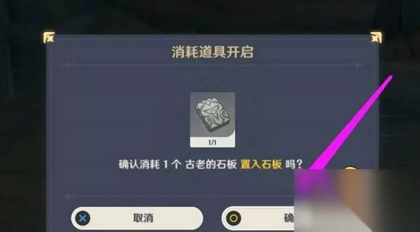 3、打开背包,消耗四块古老的石板,用于修复石板路。