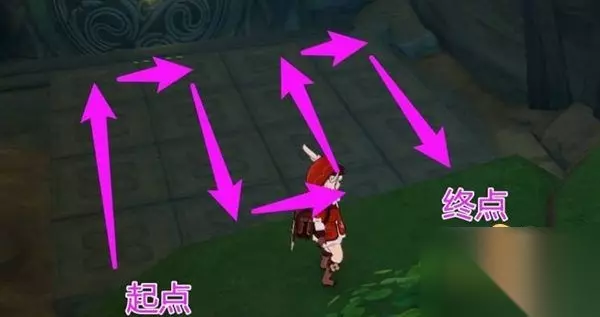 4、按照蛇形顺序走,精准踩到每一块石板上。