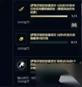 英雄联盟无尽狂潮任务完成介绍 ps:目前有部分任务存在bug,大家等待官方修复即可。 1、萨勒芬妮的惊喜派对 1 任务:完成2件悠米任务后用蕾欧娜获胜(需要其他所有故事) 奖励:1000金币 2、萨勒芬妮的惊喜派对 2 任务:用5件进化武器赢得1场对局 奖励:1000金币 3、萨勒芬妮的惊喜派对 结局 任务:在完成1个厄运小姐信标、1件悠米任务和1次卑尔维斯试炼后用萨勒芬妮赢得1场对局。 奖励:强化符文:欢乐庆典、1000金币