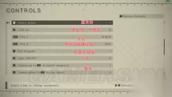 《尼尔机械纪元》的默认按键比较蹩脚,很多都不适应默认按键,但是又不知道怎么修改按键,下面为大家带来了《尼尔机械纪元》PC版按键设置教程及操作翻译说明,一起来看看怎么自定义键位吧。 设置有很多都是灰色,必须要创建好存档才可更改