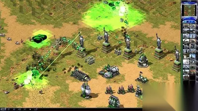 3、德国/卫星定位离子炮,这货偷袭利器,我就被其伤害好多次,隐身,但不防空。可以用飞行兵追着打,坦克只推荐重装天启,皮厚,这货攻击很强,但装弹需要期间。防偷袭的话,盟军多造裂缝器,黑幕下爱国者,火箭。苏军当然是心灵探测器防空炮了