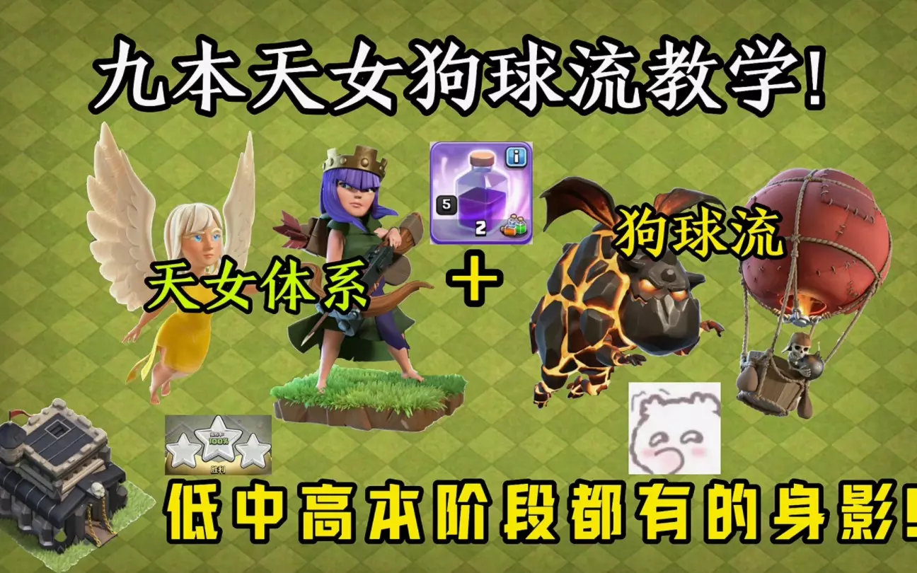 按照惯例,本期带来的是12本的收尾流派—天女狗球流,对操作和意识要求较高,虽然兵种没什么变化,但是打法层出不穷,很多情况下需要改变配兵和药水数量,才能保证把把三星,本视频只给一个相对通用的天女狗球配兵(不一定能推平所有12本阵型),希望感兴趣的小伙伴能够从这个基础上发展出自己的配兵风格,最后祝小伙伴们把把天女狗球都三星哈^▽^