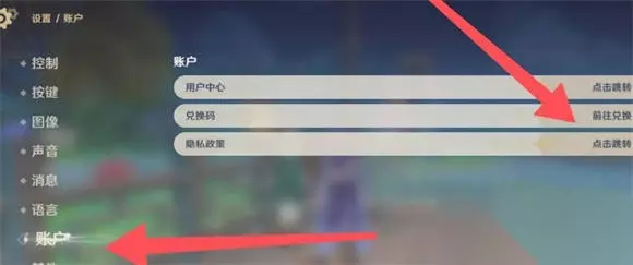 3.在设置界面中找到“账号”—“兑换码”,点击“兑换码”可以打开交换码界面;