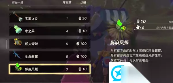 1、在这里我们可以买到酥麻凤蝶、毅力青蛙和生命蜥蜴。