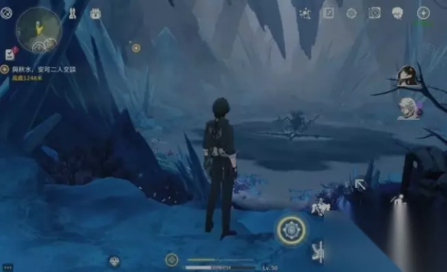 6、走了一段距离后,你就能看到下图中的这个场景了,那个隐隐泛着红光的就是能快速来到辉萤军势附近的传动点了。