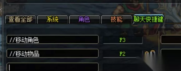 4.问如何把地图里的全部物品转移到角色脚下: 游戏设置-快捷键设置-聊天快捷键,如图输入即可,快捷键可改,移动角色是把角色移动到房间的上一个门,两个功能在一次地下城中都只能使用一次