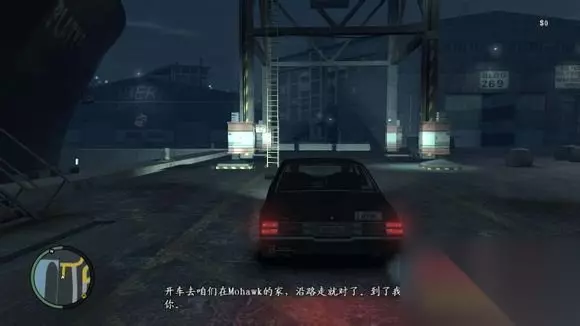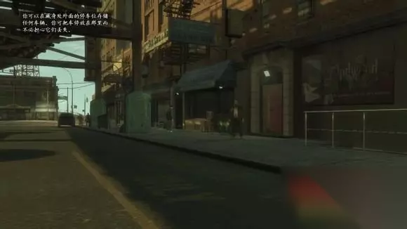 在路上系统会提示一些开车的基本方法,比如按”H“开车灯,按”空格“手刹等。 还有个比较好的就是玩中文版的话你可以看到在任务途中任务人物会和Niko说话,有中文翻译在下面,很是有意思(多玩几遍对话也可能有些区别,应该是有1~2套对话在里面),这也是前几代翻译没有做到的地方。比如这个任务经过Roman的出租车场的时候Roman会向Niko介绍。如果没有显示,那么到“设置”中的“显示”页里找到“字幕”选项勾选“打开”即可。 到达目的地后,依然是过场动画,Roman在信里大吹特吹自己混的非常好,而Niko发现Roman其实什么都没有,没有他信里提到的豪宅、跑车、女人、金钱,只有脏乱的出租屋和最大个的蟑螂。而Niko在向Roman倾诉的时候,胖子Roman竟然睡着了,随后Roman接到Vlad的电话离开,任务结束。 可以到床上存档也可以不存,因为有自动存档的关系。 去到外面有停车位,这个也是和前代的车库截然不同的东西,没车库好用,只能停2辆交通工具,且没有实时修复功能,想要修复的话最快的就是去安全屋存档然后读档出来就修好了。