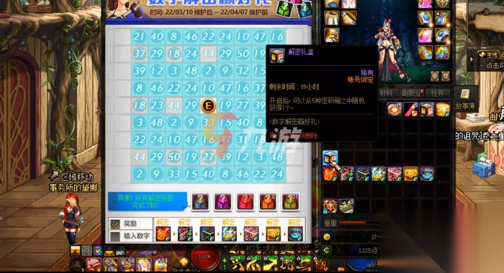 拿到解谜宝箱之后开启可以获得随机的数字盒子,按照10的阶段进行分类,小伙伴们开启之后就可以获得数字。然后自动填在游戏当中的解谜板上面,大家只需要完成每一行以及每一列的数字,就可以拿到奖励了。