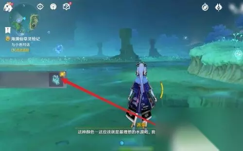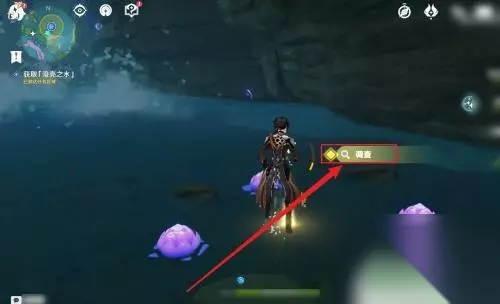 2.然后在山洞右侧瀑布附近调查【水面发光点】